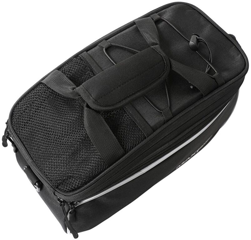 - víceúčelová brašna na nosič s nastavitelným objemem (rozepnutím horního zipu)